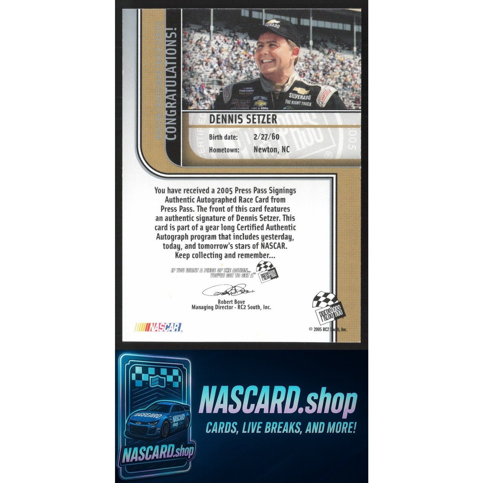 This is a nice example of a 2005 Press Pass #NNO Dennis Setzer Signings