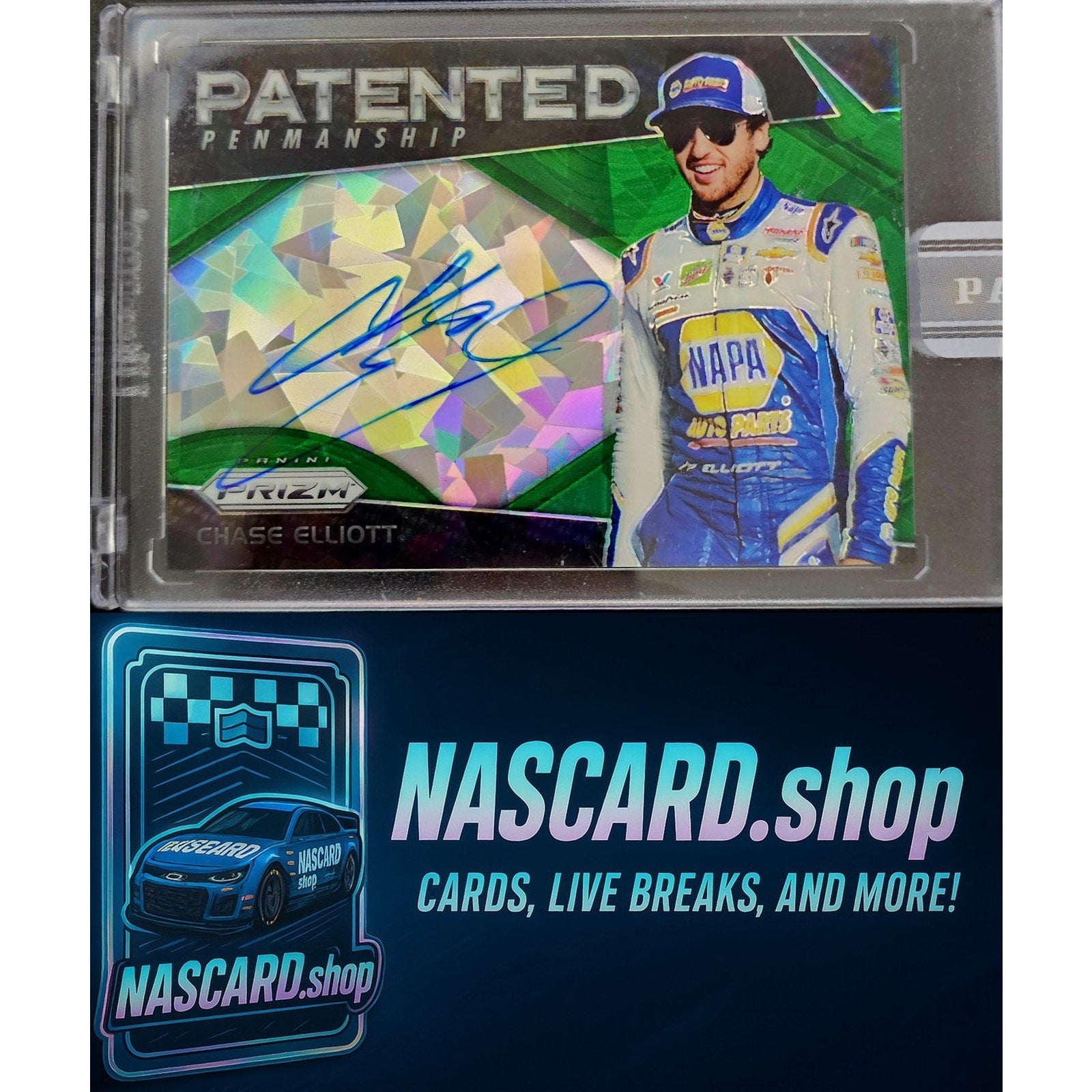 2018 Panini Prizm Chase Elliott Patented Penmanship Green Cracked Ice Prizm #1/1 This product comes from the White Box and is a 1/1.