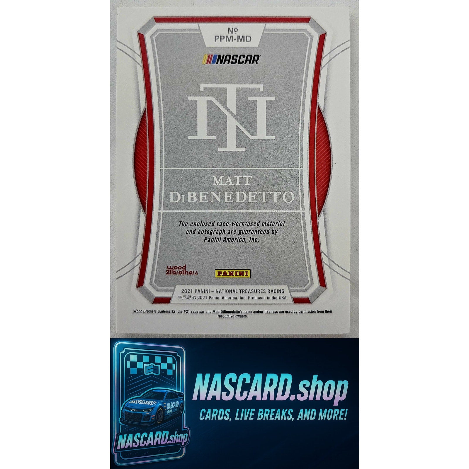This is a nice example of a 2024 Panini National Treasures #PPM-MD Matt DiBenedetto 2021 Premium Patches Midnight Holo Silver