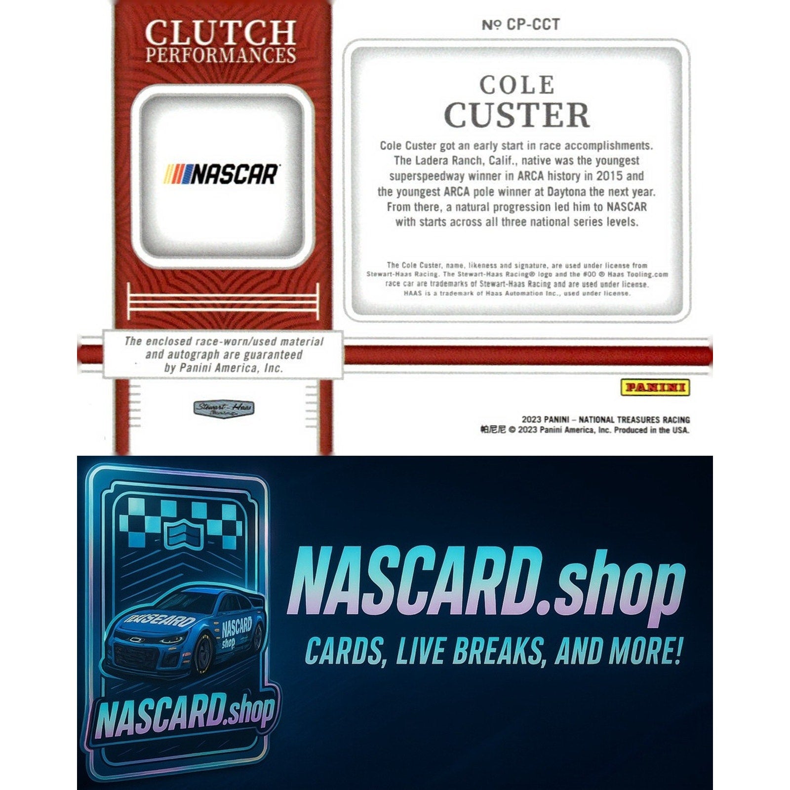 This is a nice example of a 2023 Panini National Treasures #CP-CCT Cole Custer Clutch Performances Green