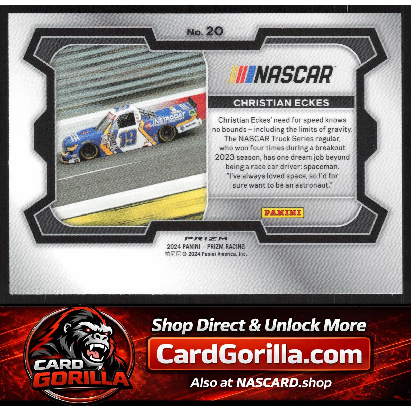 This is a nice example of a 2024 Panini Prizm #20 Christian Eckes White Sparkle