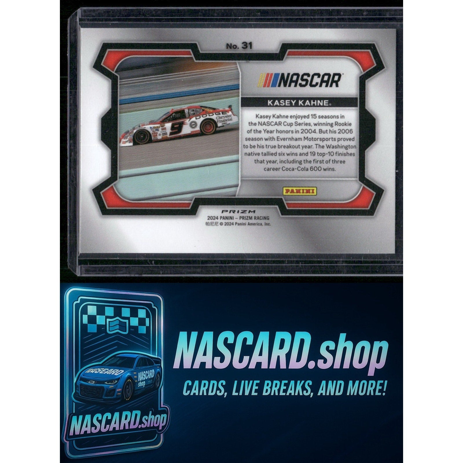 This is a nice example of a 2024 Panini Prizm #31 Kasey Kahne White Sparkle