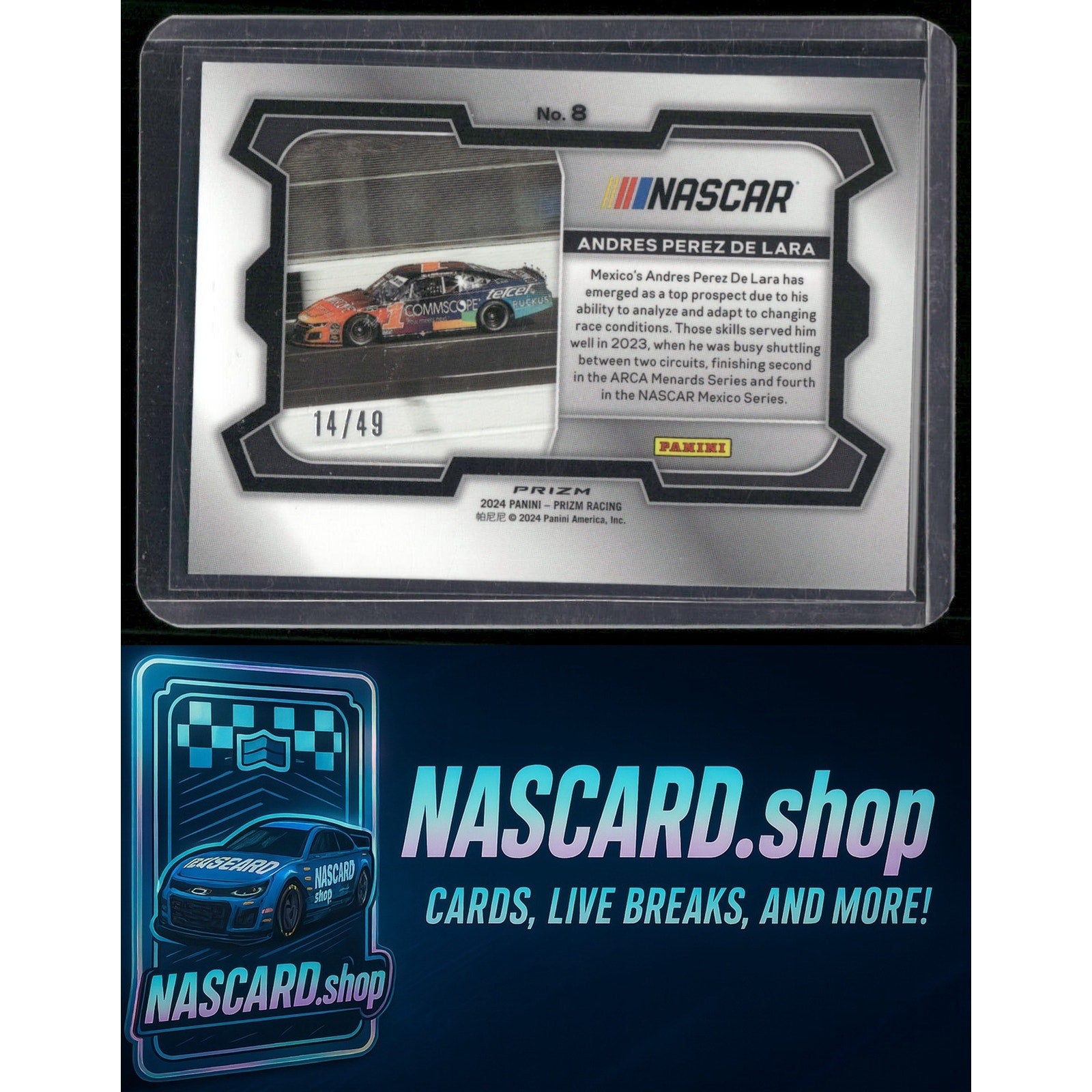 This is a nice example of a 2024 Panini Prizm #8 Andres Perez De Lara Carolina Blue