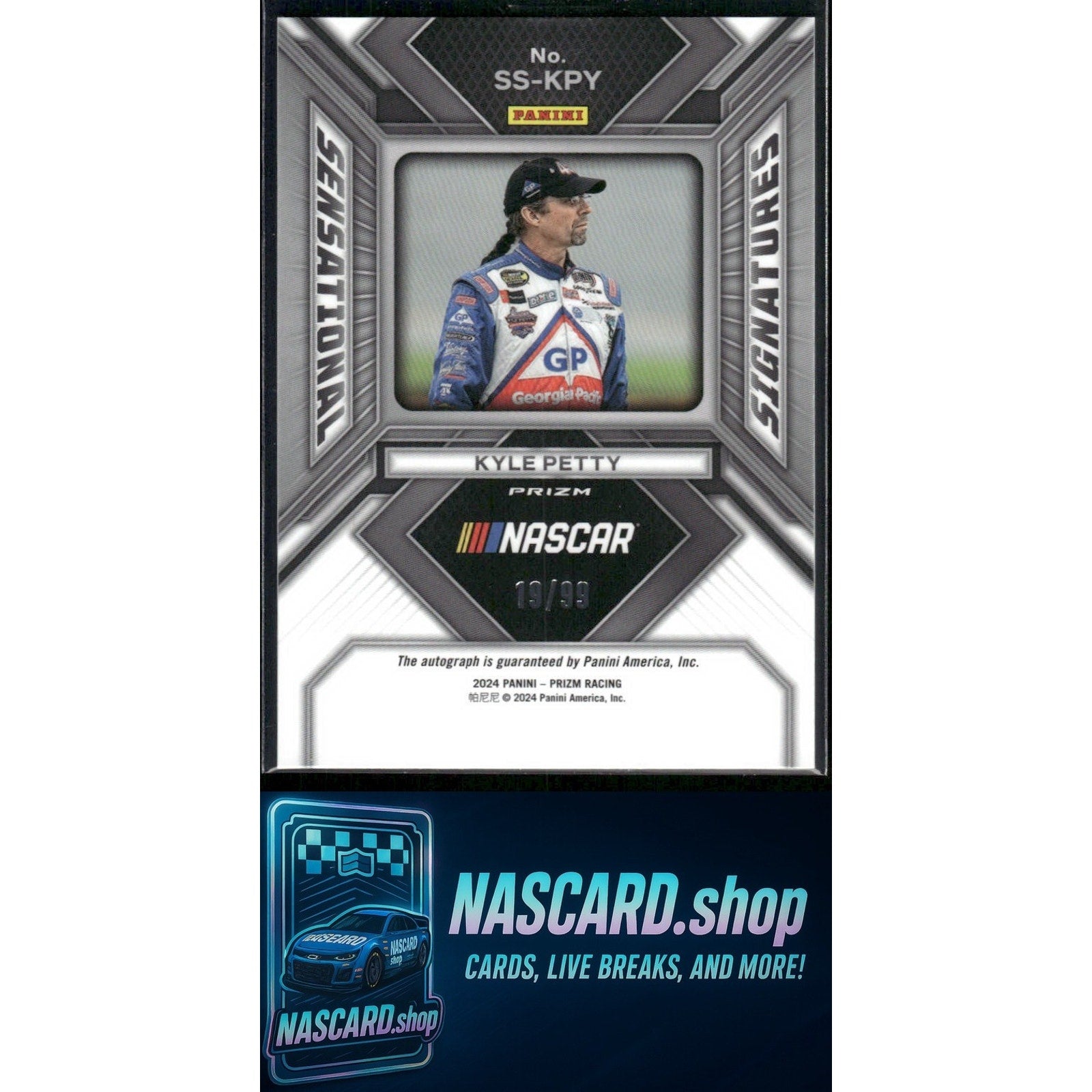 This is a nice example of a 2024 Panini Prizm #SS-KPY Kyle Petty Sensational Signatures Red