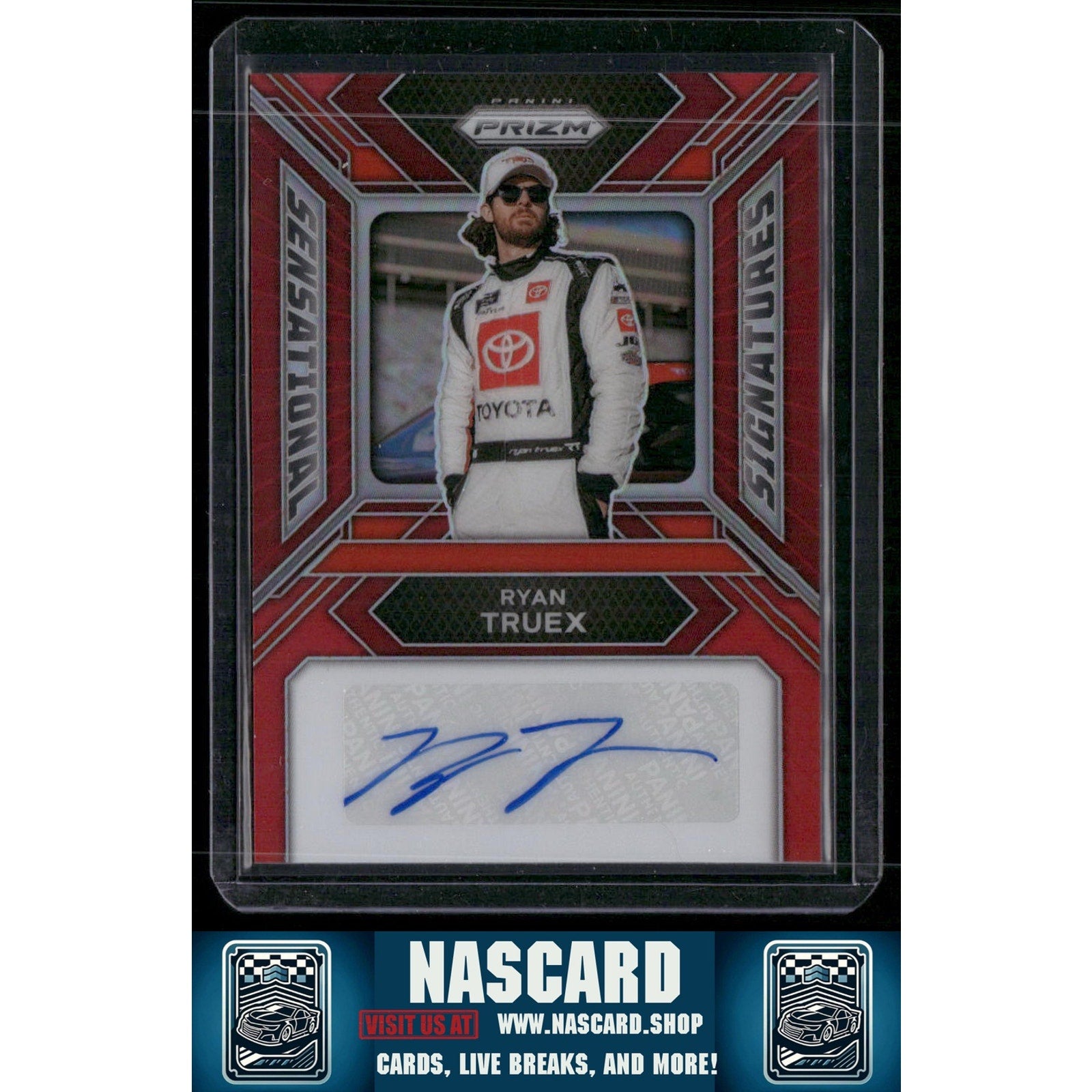 This is a nice example of a 2024 Panini Prizm #SS-RTX Ryan Truex Sensational Signatures Red