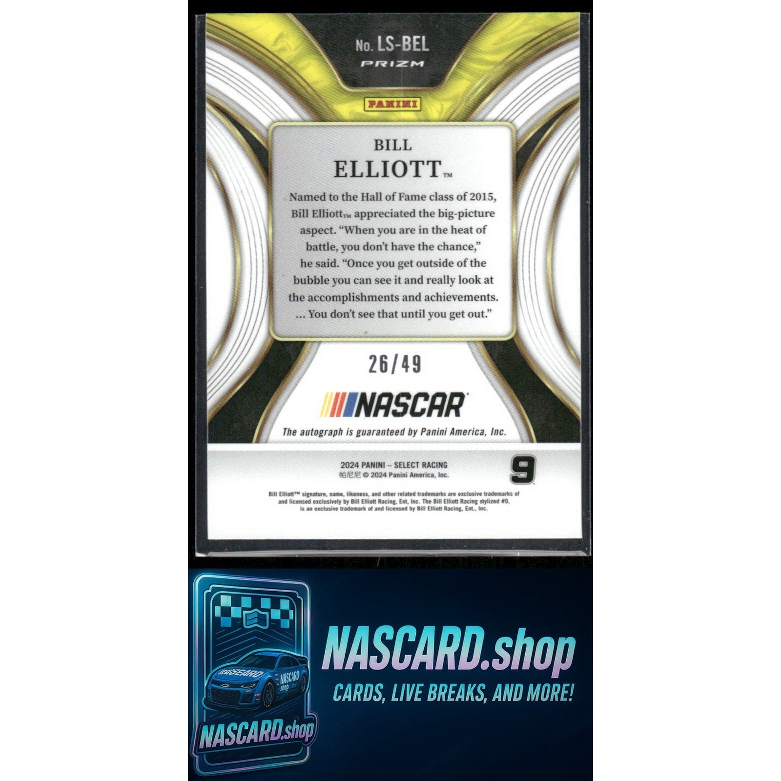 2024 Panini Select #LS-BEL Bill Elliott Legendary Signatures Blue Prizms #/49