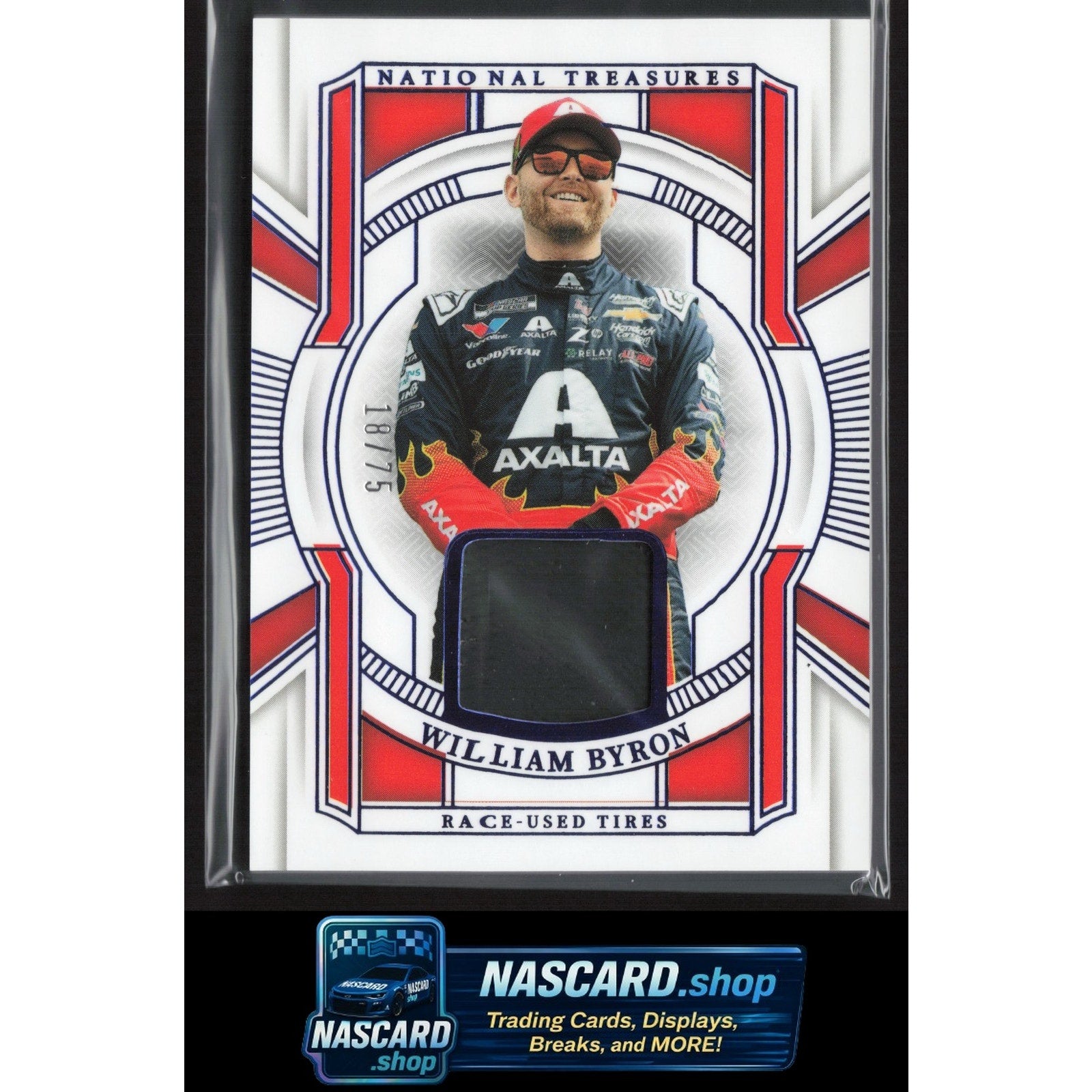 This is a nice example of a 2025 Panini National Treasures #RUT-WBN William Byron Race Used Tires Blue #/75
