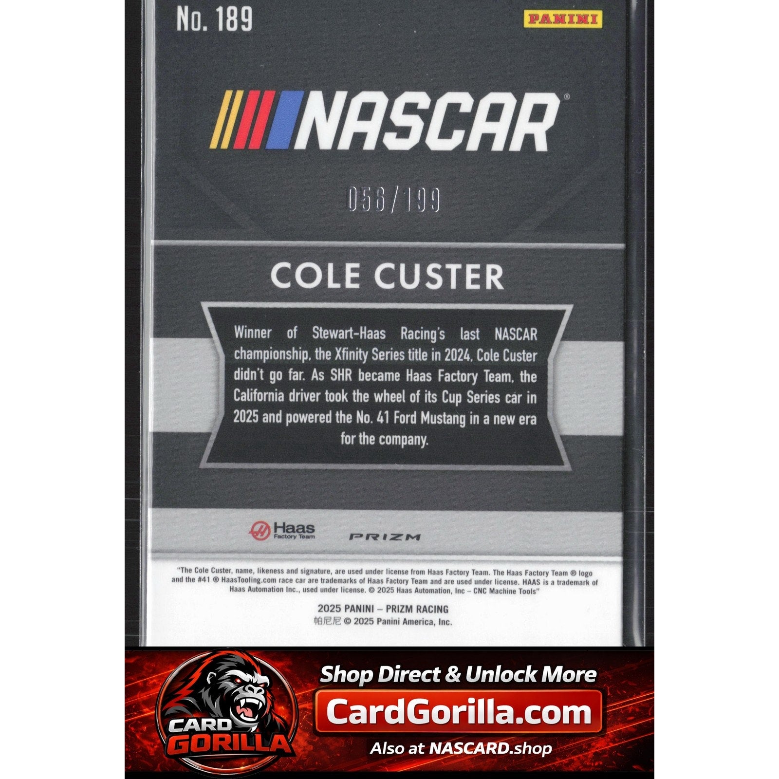 This is a nice example of a 2025 Panini Prizm #189 Cole Custer Blue