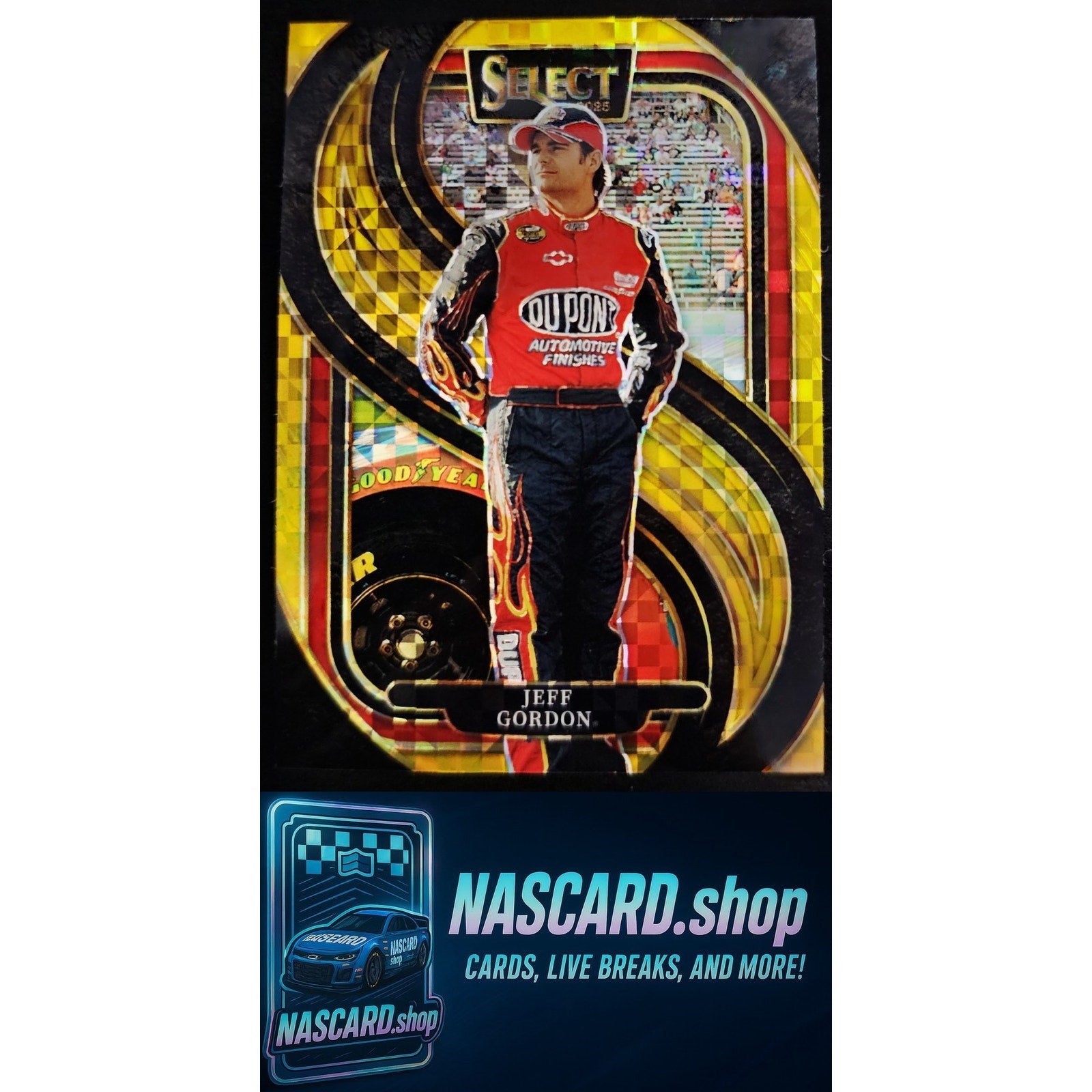 This is a nice example of a 2025 Panini Select #201 Jeff Gordon Gold Power Plaid