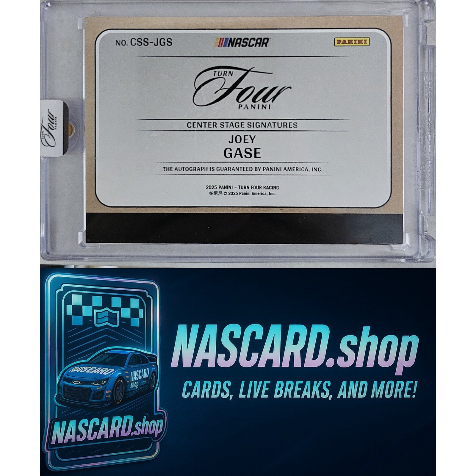 2025 Panini Turn Four #CSS-JGS Joey Gase Center Stage Signatures Blue #/49