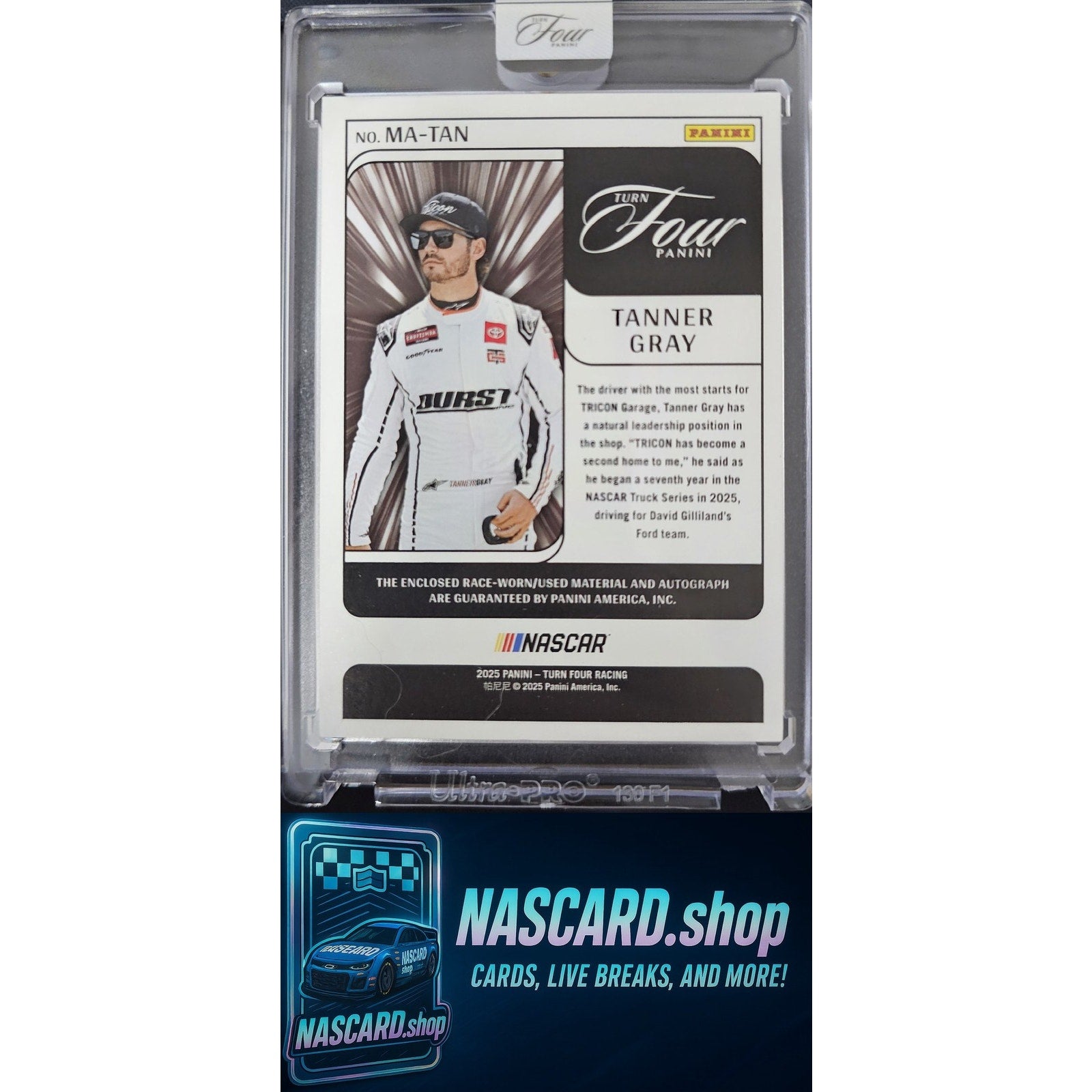 This is a nice example of a 2025 Panini Turn Four #MA-TAN Tanner Gray Memorabilia Autographs